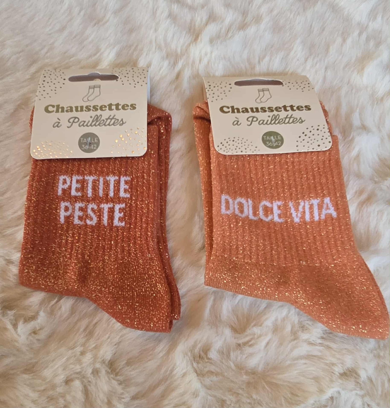 Chaussettes à Paillettes avec Message : Petite paste / Dolce Vita