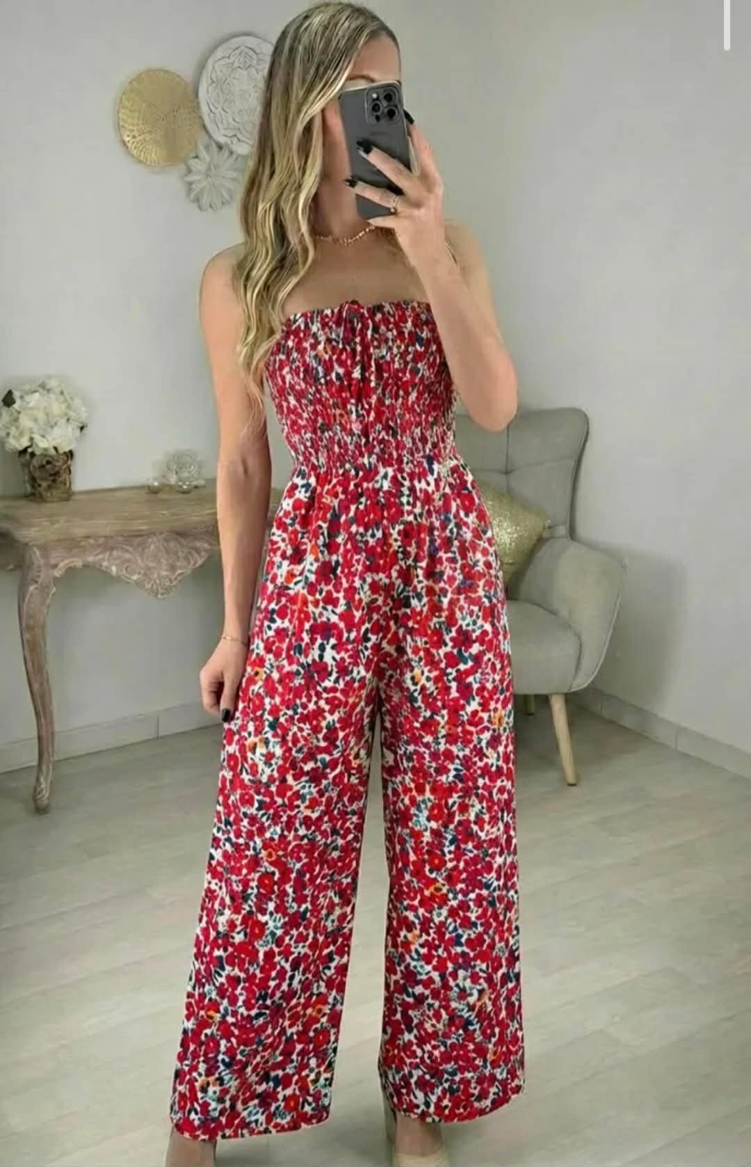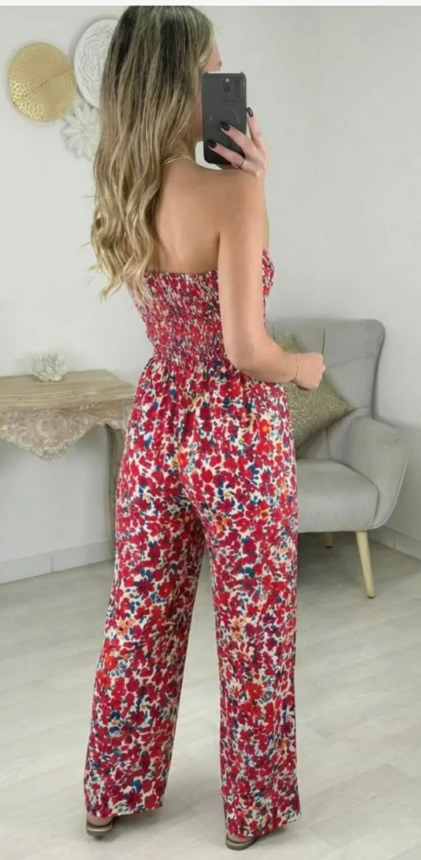 Combinaison coupe bustier tout élastiqué au niveau de la poitrine avec poche sur les côtés